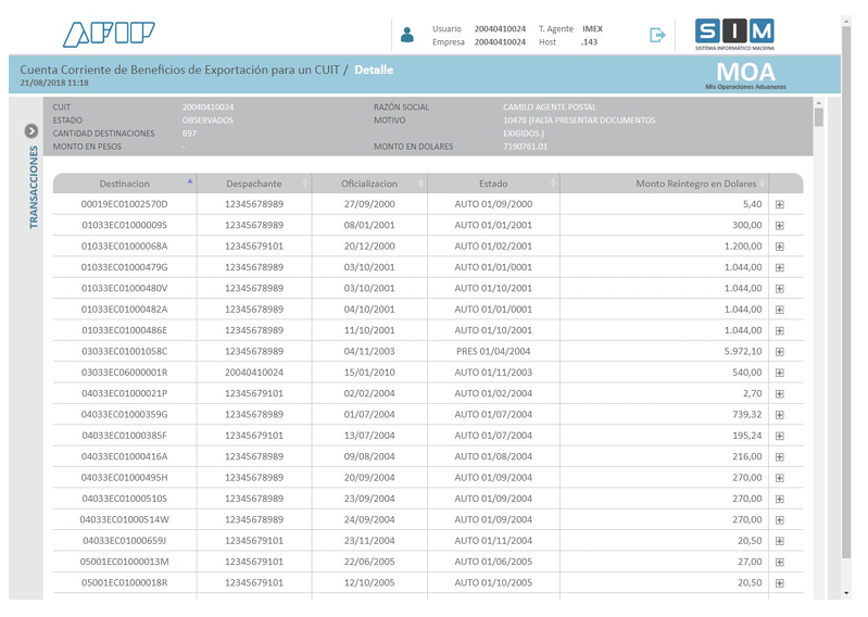 “Cuenta Corriente de Beneficios a la Exportación” – Mis Operaciones Aduaneras
